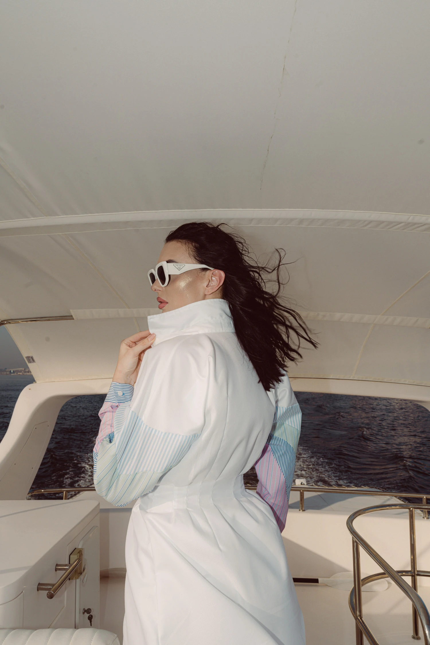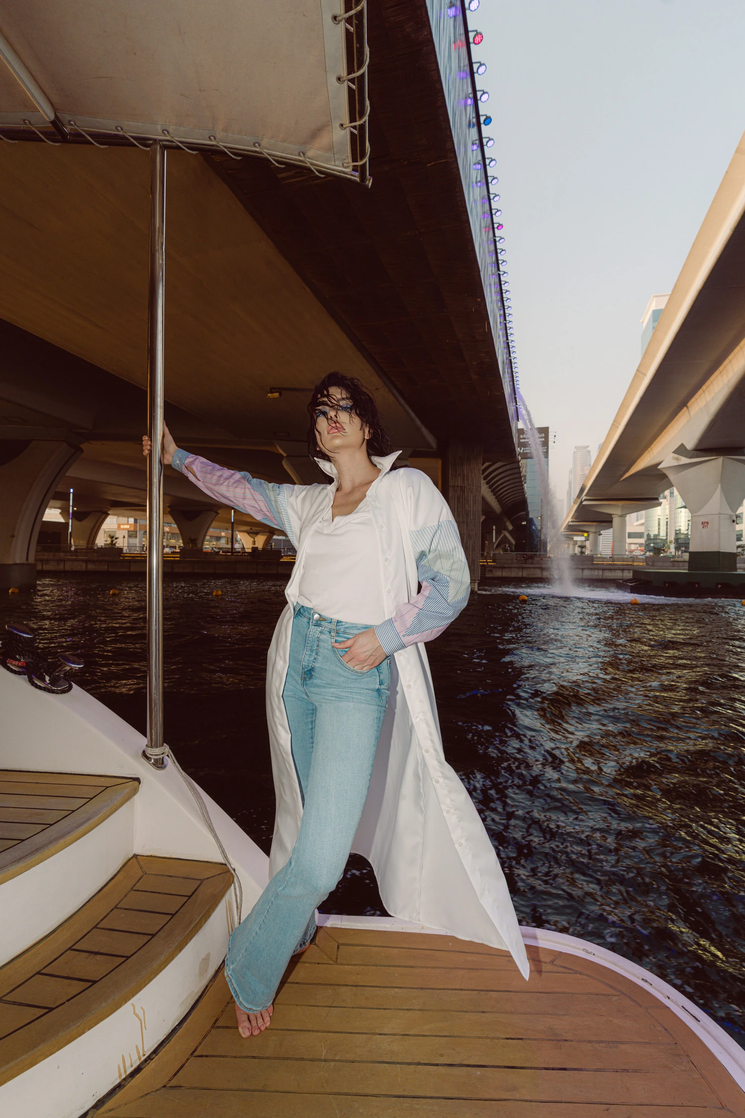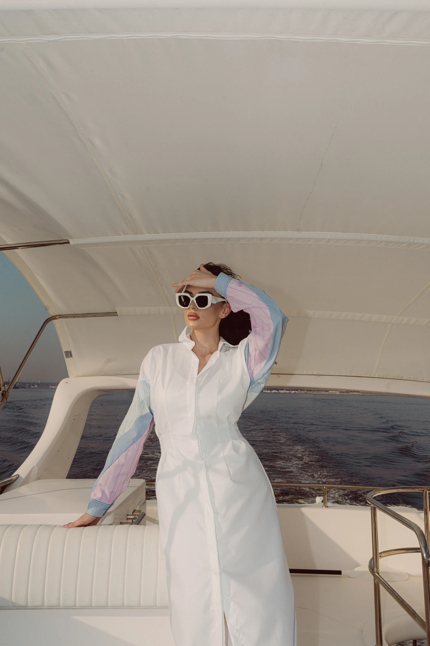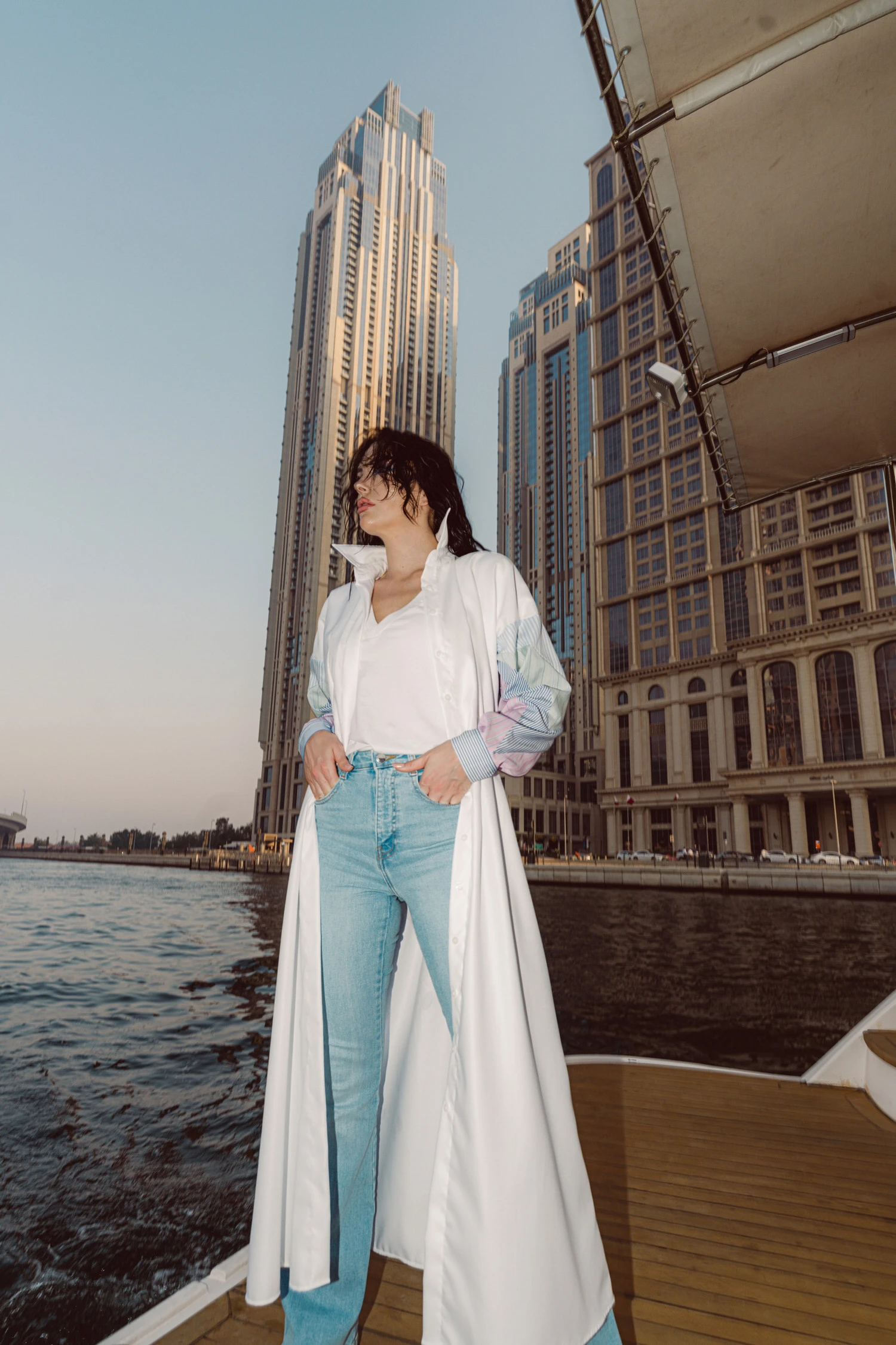 Maxi shirt dress, can be worn as an abaya too. Chic look made with light weight fabric with a fitted waist. Definitely a dressy summer look!